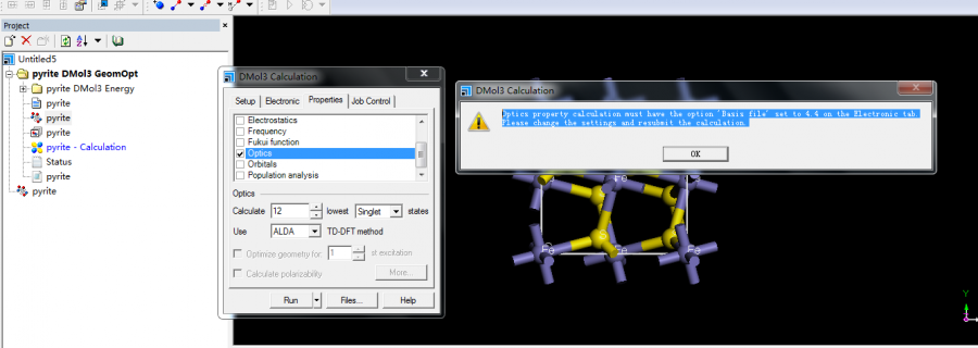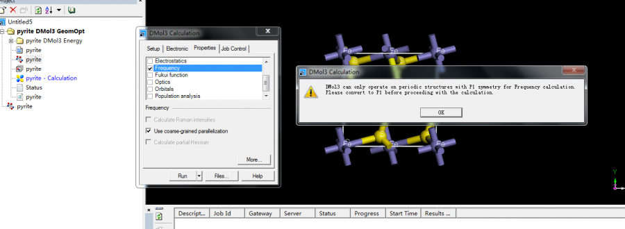 我在用MS计算黄铁矿晶体的optics时,出现了这样的错误提示,无法计算,求指导这是什么原因? 我又计算了frequency 又出现了错误提示如图,无法计算,求指导这是什么原因?需要如何解决? @jiewei 错误提示.png 运行出错1.png |