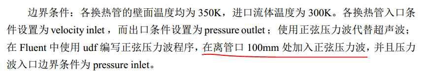 圆管如图所示,入口条件为速度入口,现在在入口100mm处添加压力波,压力波入口边界条件是压力入口。那么这个离圆管100mm的边入口怎么设置? 发自小木虫Android客户端 |