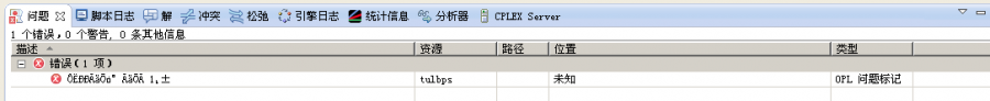 Cplex求助! cplex新手, 1.cplex中要定义个{string} a,b是一个string ,而a也是对应b的一个string ,那么在dat程序中如何输入呢? 2.在编译完整个cplex代码之后,调试过程中出现如图所示的错误,不知道是什么错误和原因? 6CZ2CIAL~RD_8EJJ`OII@7Y.png |