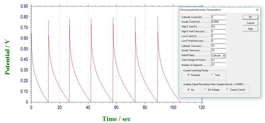 CHI660D电化学工作站利用计时电位法进行恒流充放电