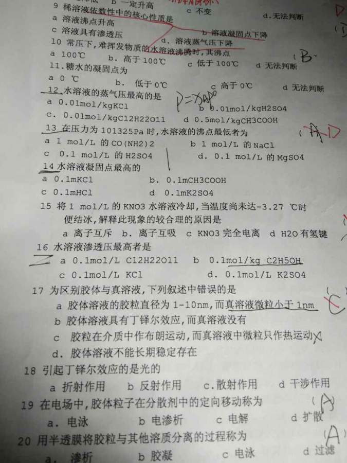 考虑质点数目,质点数越多,对溶液依数性改变越大 比如0.1mol 的NaCl溶液 由于NaCl是强电解质,发生NaCl=Na(+)+Cl(-) 其质点数就是2*0.1 0.1mol的H2SO4=2H(+)+SO4(2-)质点的浓度就是0.1*3 0.1mol有机分子比如尿素和蔗糖 不电离 质点浓度就是0.1*1 弱电解质,比如0.1mol醋酸 不完全电离 质点数小于0.1*2 |
