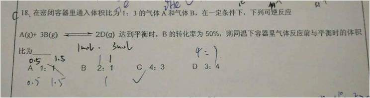 密闭容器不是体积不变吗,反应前后体积比不应为1:1吗 发自小木虫Android客户端 [ Last edited by 冰点降温 on 2016-12-18 at 20:05 ] |