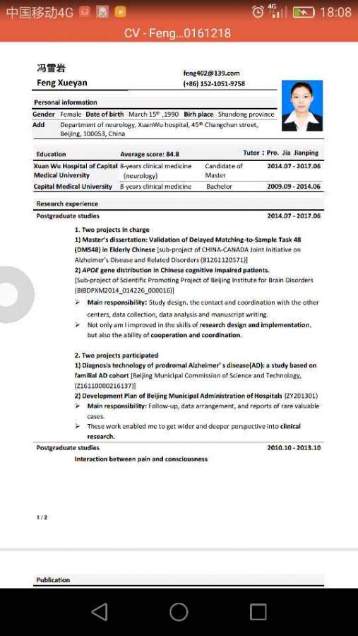 本人小白一枚,写了一份CV,希望大家广提建议 @qqwei @zhaoligood 发自小木虫Android客户端 |