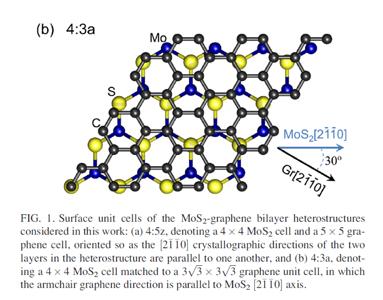 小弟不才,刚学习第一性原理计算不久。现在涉及到二维材料异质结的计算。但是异质结中平面旋转这个问题难住我了。请问各位这种异质结在MS中如何建立。 如图,论文中利用一个4*4的MoS2和根号3*根号3的石墨烯建立异质结。其中石墨烯面相对选择30度 发自小木虫IOS客户端 |