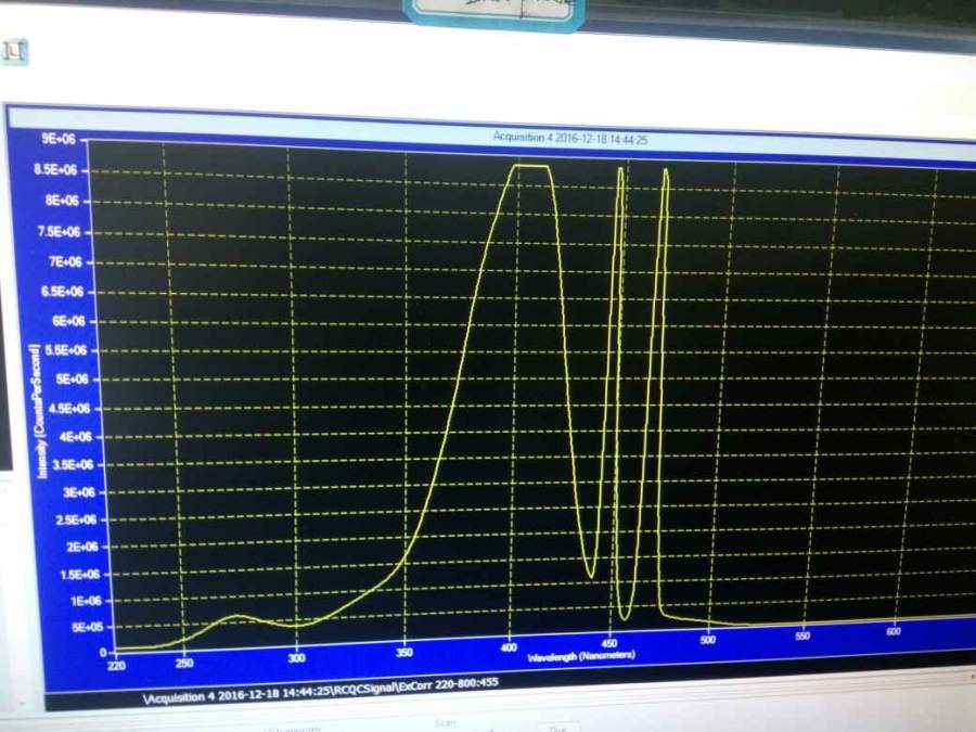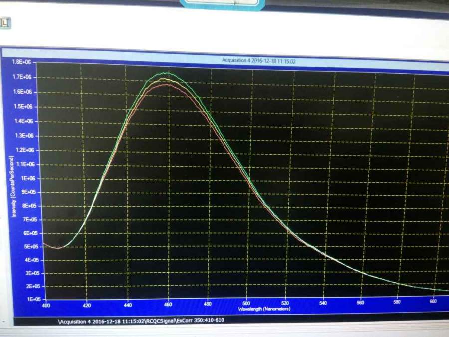 各位好,我最近合成了某物质,做了下荧光测试,请问下,我用一定的激发波扫发射波,再用一定的发射波反扫激发波,为何得不到等高的两个激发谱和发射谱?下面附图,第一张是350nm激发下扫的发射波普,第二张是在455nm发射波下扫的激发谱,350nm的激发波是根据紫外测试最大吸光度来确定的。 是因确定的激发波和发射波不是最佳的?还是这种物质没有很好的荧光性? 发自小木虫Android客户端 |