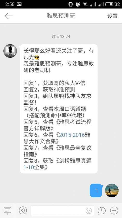 小弟报了雅思考试,在微博上成天有机构给发私信机经预测,说预测多准多准,还给客户反馈截图,有人用过吗,这些靠谱吗?谢谢! 发自小木虫Android客户端 |