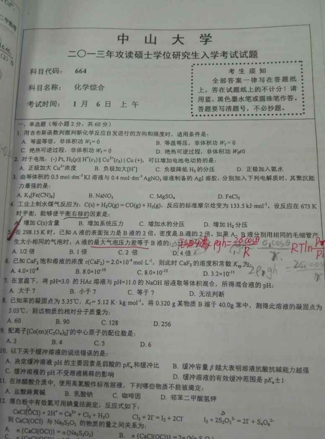 刚考完,趁还有印象,把北大化学的专业课给来年要考的学弟说说吧