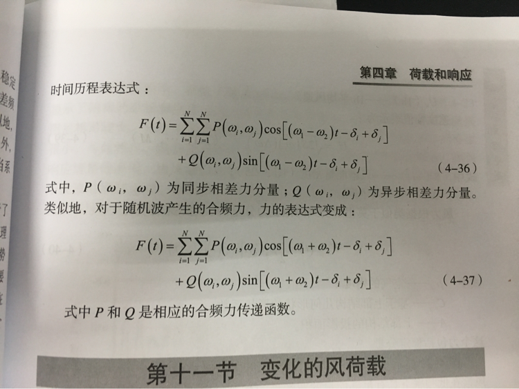 哪位大神知道这两个公式是怎么来的,随机波浪所有频率产生的缓慢漂移力进行求和,得到的荷载的时间历程表达式。或者有木有相关解释的文献可以分享一下的 发自小木虫IOS客户端 |