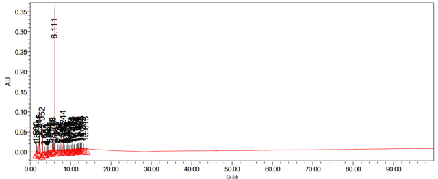 植物药中分离得到结晶,重结晶得到,状态是白色粉末,TLC不同展开剂均显示单点,先确定其纯度,再准备打核磁。 熔点测定不太顺利,找不到准确的熔点,200摄氏度开始熔化,有大量气泡产生,很迷茫。 液相图谱做出来很奇怪,如图所示,按照药典要求,C18柱,紫外检测器,203nm,梯度洗脱,乙腈水为流动相,前段溶剂峰也太杂乱了,感觉不只是溶剂峰,有成分没有吸附在柱子上。其他峰就没有了。到底是哪里的问题。我该如何知道该物质的纯度,求大神! @lifeliuyan 发自小木虫IOS客户端 |