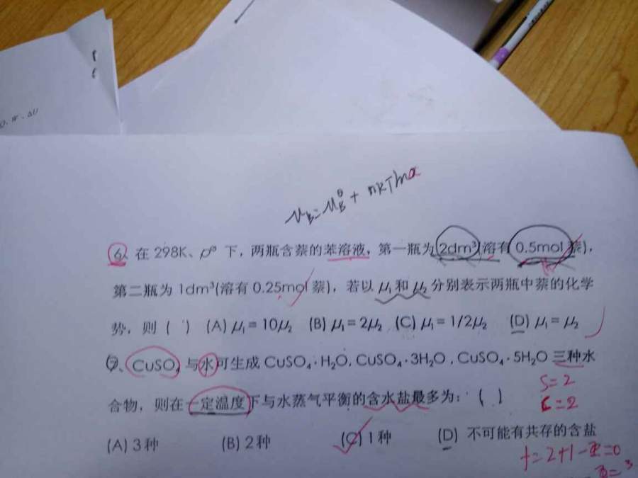 求助化学势,吉布斯自由能等试题 已有1人参与