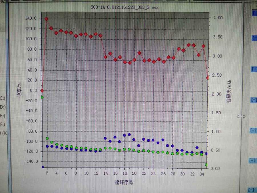 不知道你的负极材料是什么,电压要充到3V。扣式电池电流是0.几个mA,大概0.1C的样子;把充电曲线单独列出来,好的和坏的各一条,对比下 发自小木虫IOS客户端 |