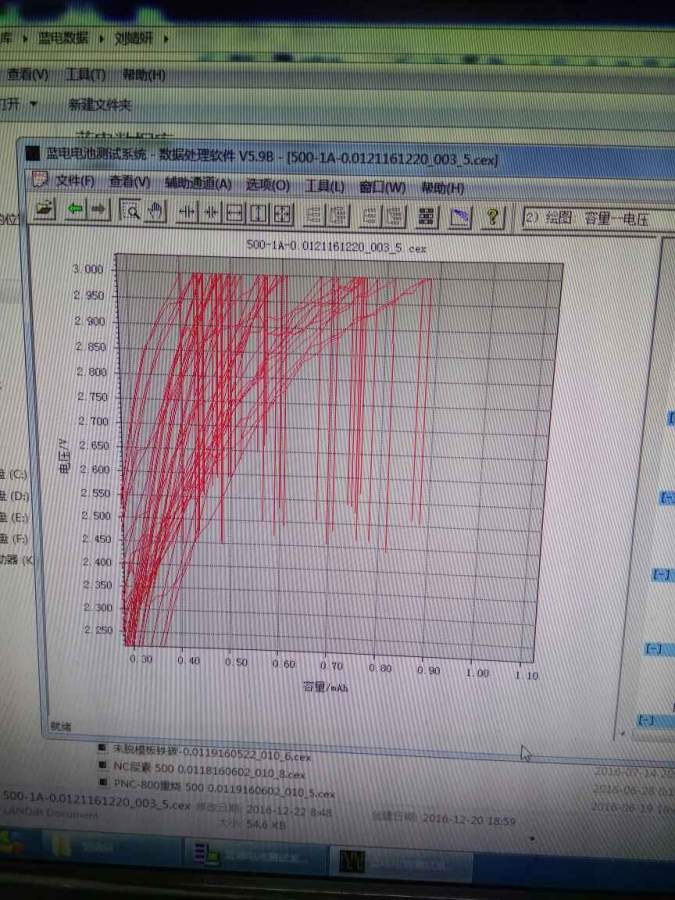 负极材料循环测试,刚开始都还正常,突然充电就不正常了,比放电大很多,而且不稳定。电压容量图里面表现为充电曲线在高电压处很曲折。我最近做的材料常出现这个问题,尤其是在小电流密度充放电时表现明显,求助!谢谢!附循环图,电压容量图,局部放大的电压容量图 @a88592718 @langzhizhou 发自小木虫Android客户端 |