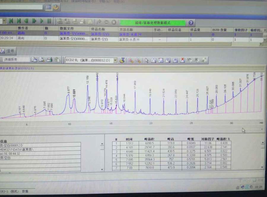 求助!刚刚接触气相 用HP5890 DB-5MS色谱柱找氯苯类的分析方法 今天发现不进样品 空走程序 出现很多保留时间间隔均等的杂峰 如下图 什么原因啊!求各位大神指教!是什么地方污染了还是某个外部条件不稳定啊!!已经老化一晚上柱子了(老化的时候柱子没从检测器上拆下来) 发自小木虫Android客户端 |