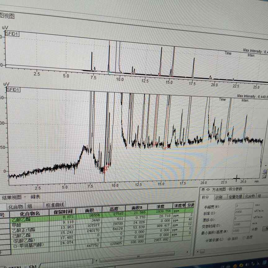 最近气相色谱仪用白酒专用柱进白酒样品,每次刚开始基线很好,样品进多了就会出现毛刺峰,检测器、柱子都老化了,进样垫换了,衬管也清洗了,还是不知道啥原因,哪位大神能解答下,非常感谢 发自小木虫Android客户端 |
