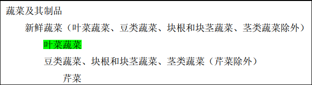很不明白,因为接着分类里又单独列出了叶菜蔬菜,比如刚从地里割下来的韭菜到底属于新鲜蔬菜还是叶菜蔬菜??