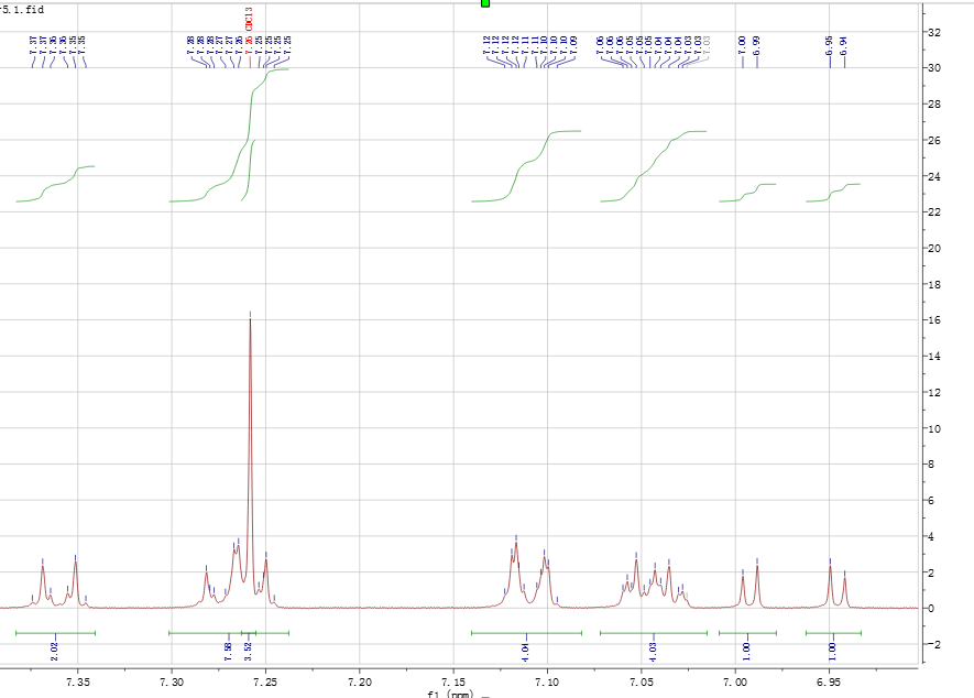用MestRenova分析核磁谱图时,进行手动分析时,选中的区域包含了溶剂峰,这该怎么办?比如下图,在7.26处应该是氘代氯仿的溶剂峰,在7.25-7.30间的手动积分值为7.58,对7.26处的尖峰进行手动积分,值为3.52,而我的样品在7.25-7.30间是三重峰,应该积分为4,难道这种情况下是先对整体求积分,然后对溶剂峰求积分,再进行积分值相减吗? 1.png |
