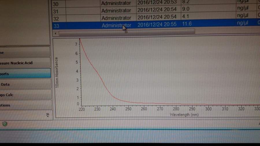 NANO2000核酸蛋白仪测DNA浓度260没有峰,是什么原因啊???新手急求 已有2人参与