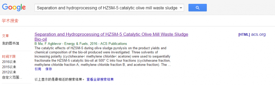 | RT, 请帮忙检索一下,若有检索收录报告出具,可付费,谢谢。Bing-ji Ma, Foster A. Agblevor. Separation and hydroprocessing of HZSM-5 catalytic olive mill waste sludge bio-oil. Energy & Fuels, 2016, 30(12): 10524-10533. |