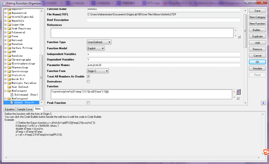 应用origin进行非线性拟合自定义函数后进行编译时出现了错误,请教高手怎么解决?