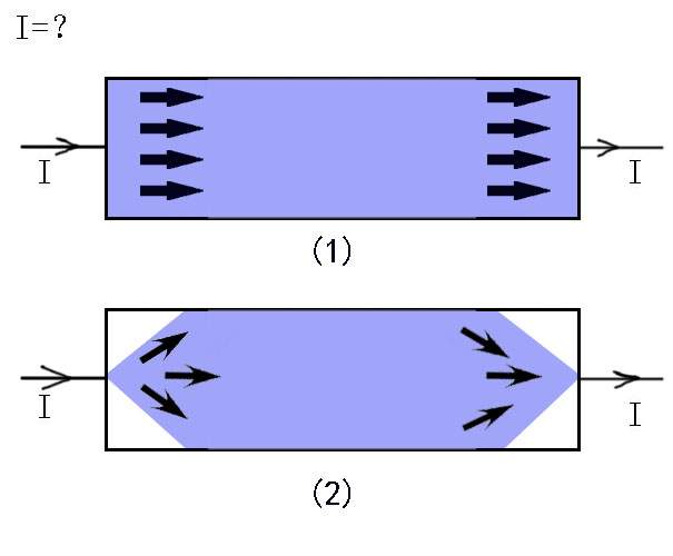 如图所示,有一个金属导电体接入电路: 请问:1.电流流经途径是情况(1)还是情况(2)? (见图2) 2.用公式U/I求出的电阻R是情况(3)区域的电阻还是情况(4)区域的电阻? (见图3) 长方体.jpg 电流.jpg 电压.jpg |