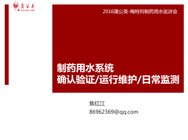 制药用水系统验证运行维护监测—焦红江2016.12.29