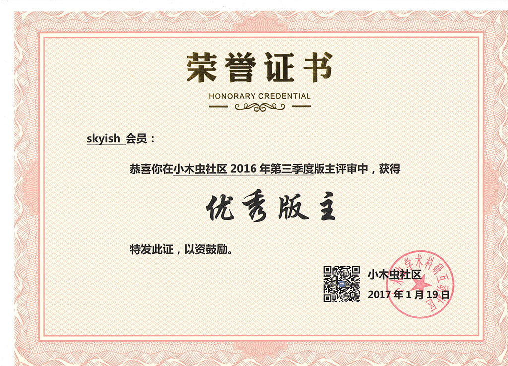 恭喜【skyish】获得2016年第3季度优秀版主