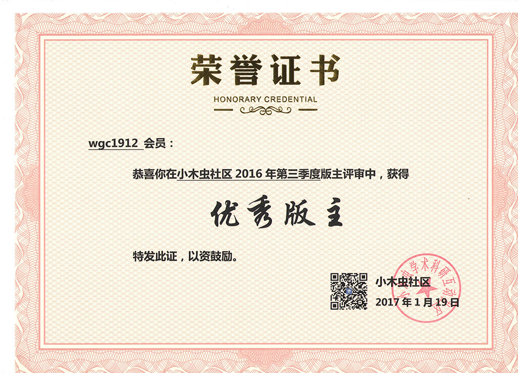 恭喜【wgc1912】获得2016年第3季度优秀版主