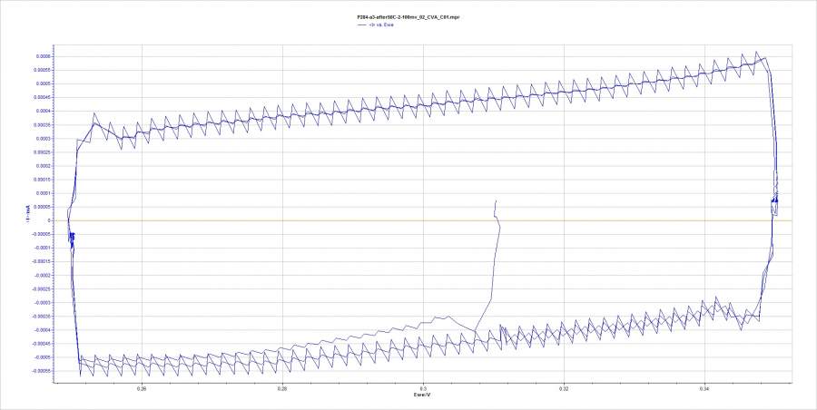 测试材料双电层电容,玻碳电极,扫速设置5mV/s - 800mV/s, 从100 mV/s 开始噪音变得非常大。 各位知不知道什么原因啊 |