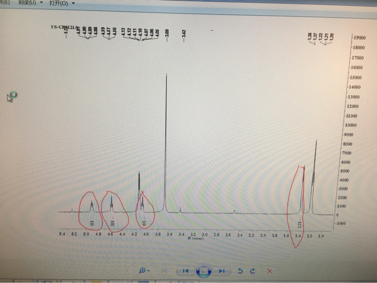 | 如图所示是一锂电电解液的H谱,圈出的四种峰是未知峰,求大神赐教 |