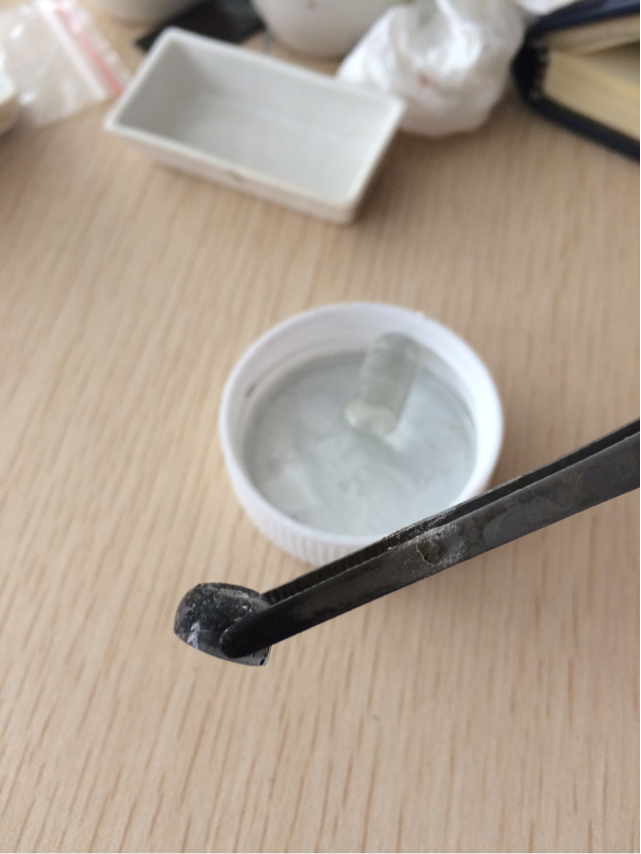 我做的玻璃柱表明浸了一层铝,我想把这层铝溶解掉,起初想用酸,但是酸对我玻璃柱的腐蚀太严重了,所以改用碱,发现碱液对玻璃柱的腐蚀并不明显,玻璃住表面仍然呈现光亮,见下图,但是发现附有铝的玻璃柱在碱液中残留了一层黑黑的东西,求助大神们知道这个是什么吗?要怎么去除掉呢?另外,能看到铝是有跟碱反应的! @comma @wacky1980 发自小木虫IOS客户端 |