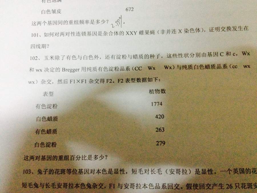 求教一道遗传学交换率的题