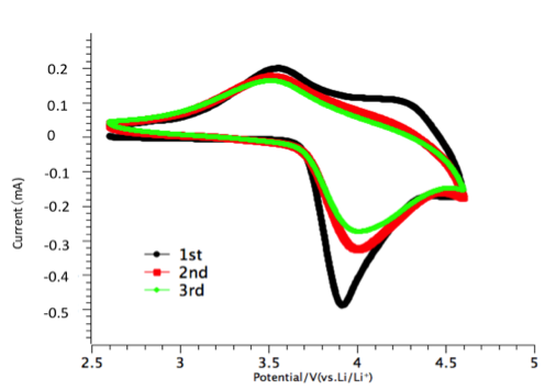 第一次做的锂离子电池富锂三元正极材料的CV图谱,该材料理论上首次循环应该出现两个氧化峰,这样来看电流值正向的是氧化峰。第二三次循环理论上应该只有一个氧化峰,按照如果只有一对氧化还原峰,那么氧化峰的电压值一定大于还原峰电压值的结论,电流值负向的为氧化峰。这就出现矛盾了。希望大神不吝赐教。谢谢。 无标题.png@louderbe@langzhizhou |