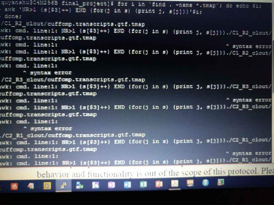 补充一下,这个是find出来的结果,都是文本文件,可是后面执行时候怎么会找不到文件呢 问题会不会出在END后面的语句? $ find . -name *.tmap ./C1_R2_clout/cuffcmp.transcripts.gtf.tmap ./C2_R3_clout/cuffcmp.transcripts.gtf.tmap ./C2_R1_clout/cuffcmp.transcripts.gtf.tmap ./C2_R2_clout/cuffcmp.transcripts.gtf.tmap ./C1_R1_clout/cuffcmp.transcripts.gtf.tmap ./C1_R3_clout/cuffcmp.transcripts.gtf.tmap 发自小木虫Android客户端 |