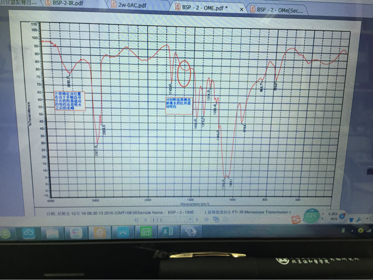 利用IR在3200到3600之前是否存在强力吸收峰确定多糖甲基化是否完全,已知多糖结构中不存在碳碳双键,所以IR中的1650处的吸收推测为多糖甲基化后吸水后游离的水峰,不知道这样推测对不对~同时3000以上也出现了羟基吸收峰,所以现在很纠结,不知道这是没甲基化完全,还是产物吸水了! 补充:对于甲基化后产物的干燥的温度以及真空要求,大家有么有建议~ 发自小木虫IOS客户端 |