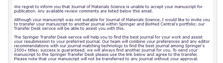 第一次投稿,有色金属冶金,做的微波介电常数,投的JMS,当天under consideration 今天状态改变 说是不符合期刊 让同意提交到其他杂志,明年四月份毕业,我该怎么办 同意提交还是拒绝了重新找,,,,![]() DC06]OS3[}%U63L[9DE94XA.png YR7U5]0RRL3CQJ)PPY[[9L8.png |
