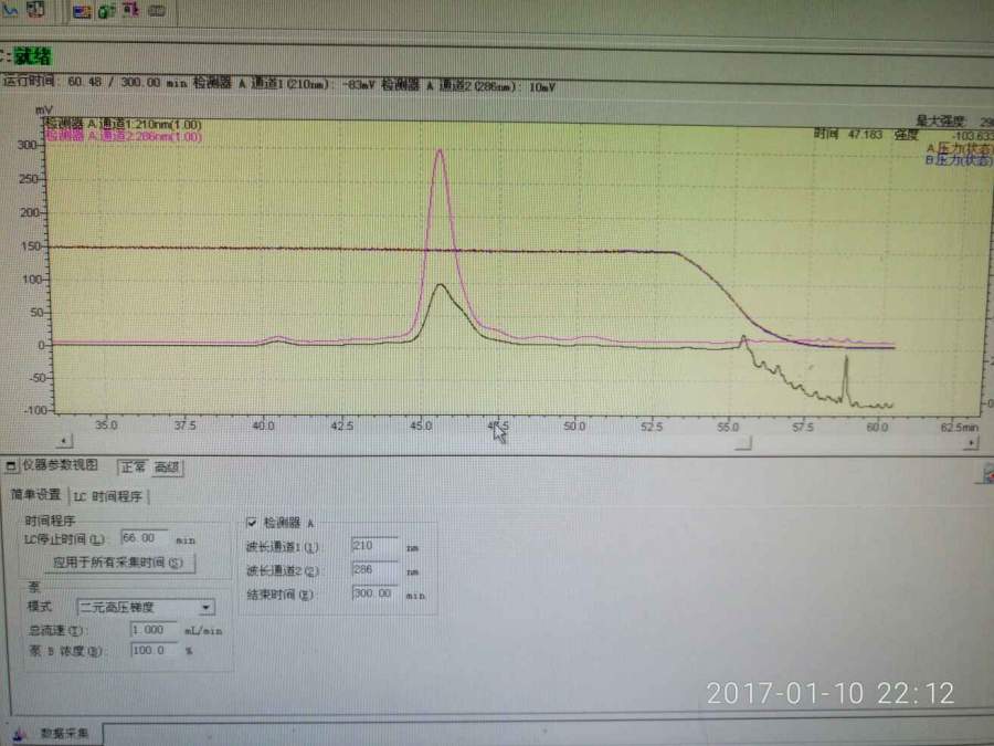 样品峰验出来图如下,286能看出来看峰有小裂分,230像个大肚子的峰,210不明显,这种峰是怎么回事?最近样品都是这种峰形状 发自小木虫Android客户端 |