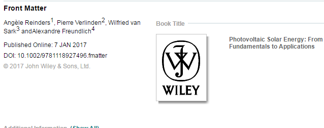 Photovoltaic Solar Energy: From Fundamentals to Applications Published Online: 7 JAN 2017 Wiley Online Library 这是一本新书讲太阳能电池方向的,希望能帮助到虫友们,本书总共十三章。压缩包里的文件是按章小节划分的,如果需要可以把它们和并成一个。 新书截图.png |
