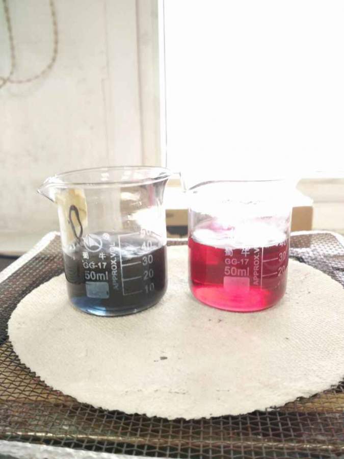 我用的是0.2ml1%的柠檬酸钠还原50ml0.01%的氯金酸。。。看文献上,合成的颜色应该是蓝紫色的,但是我合成的溶液里面有好多棕色的东西,悬浮在蓝紫色的溶液中。。。下面第一个图,右边是48nm的,左边就是形成棕色的物质之前的状态,再搅拌一下就变成第二图那种了=_= @dut_ameng 发自小木虫Android客户端 |