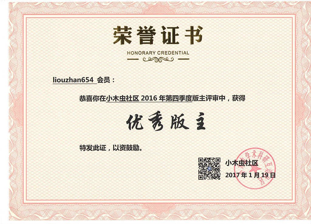 恭喜【liouzhan654】获得2016年第4季度优秀版主