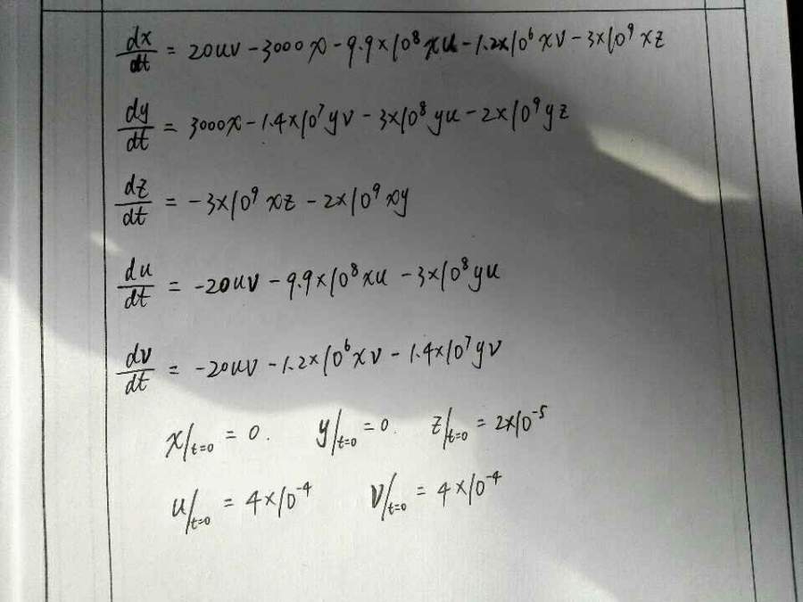 求大神帮忙怎么用MATLAB解这个微分方程组,最好能把程序代码写出来 @月只蓝 发自小木虫Android客户端 |