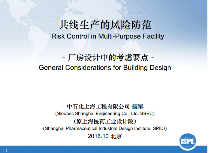 共线生产的风险防范- 厂房设计中的考虑要点—杨军2016.10