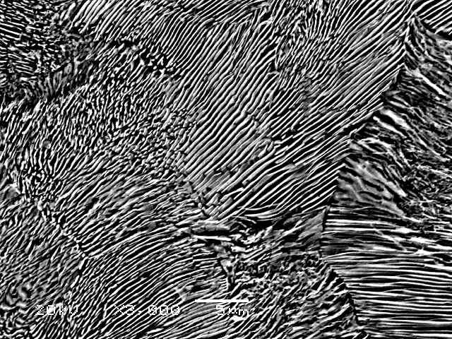 请问大神们,这是QT450和QT500金相样经4%硝酸酒精腐蚀后,用扫描电镜照的珠光体,想看其片间距,可出来效果是这样的。基体为铁素体,第三张为RuT400珠光体75%,第四张为RuT350珠光体15%。请问两个QT样的珠光体为什么是那样而不是层片状。 @wacky1980 发自小木虫Android客户端 |