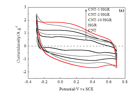 In Fig.5a the CVs show negative current at a positive voltage. Why?