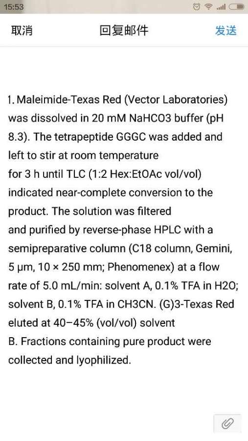 我想要重复文献中的操作,但是不知道怎么设置半制备的参数和后续冷冻干燥应该怎么做,希望可以指导一下。有两个问题: 1.文献中半制备前过滤的目的和方法 2.如文献所说收集成分在40%solventB的话,那么冷冻干燥应如何进行。 发自小木虫Android客户端 |