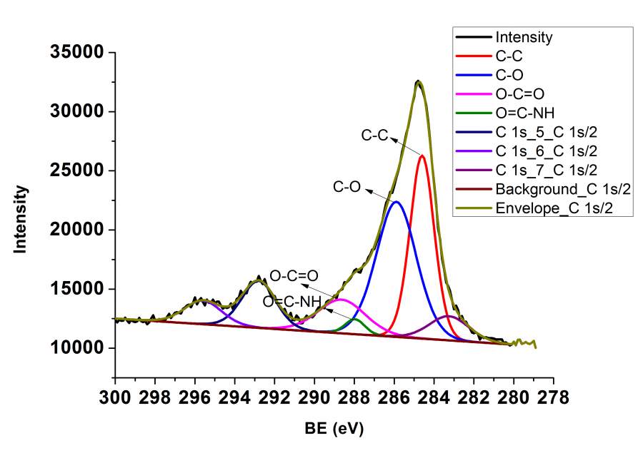 最近做了一个XPS,分析C元素 发现在292.5和295.5处出现了两个峰,请教一下这是什么基团的呀? 体系是在多糖(海藻酸钠)修饰表面负载了柠檬酸钠稳定的纳米金,体系里不含卤素等拉电子基团 ALG-Au.jpg |