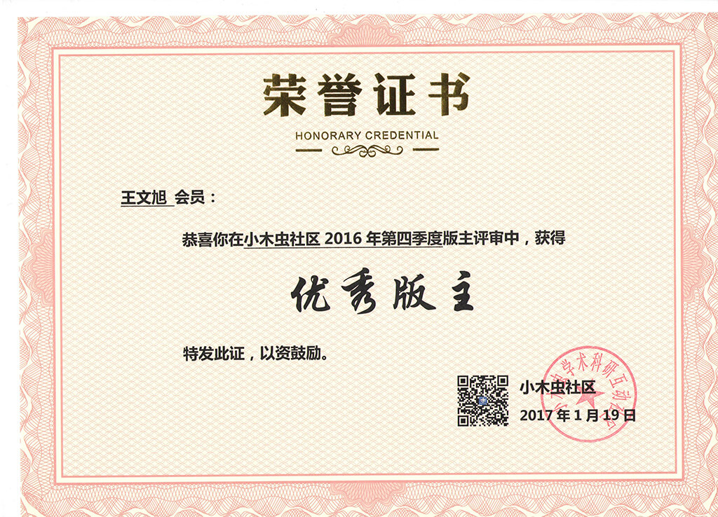 恭喜【王文旭】获得2016年第4季度优秀版主