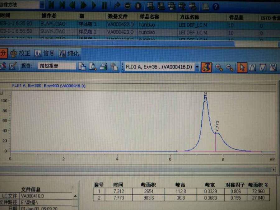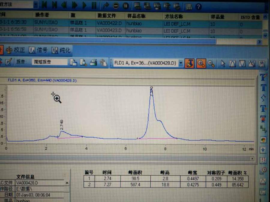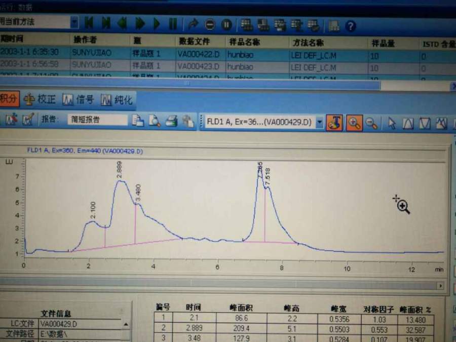 用安捷伦HPLC,C18 250×4.6的柱子,原来测峰形都没问题,最近标准品和样品出峰都有问题了,是什么原因啊????该怎么解决?????图一是标准品,图二和图三是样品。 @学术巨星 @klicking @superyeast @wyy080214 @鸭绿江畔 发自小木虫Android客户端 |