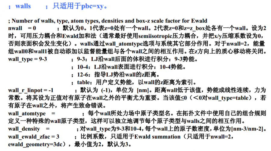 请问有哪位用过GROMACS中walls吗?mdp文件怎么设置?还有什么要注意的吗? 试了好久都不通。 ![]() 谢谢 |