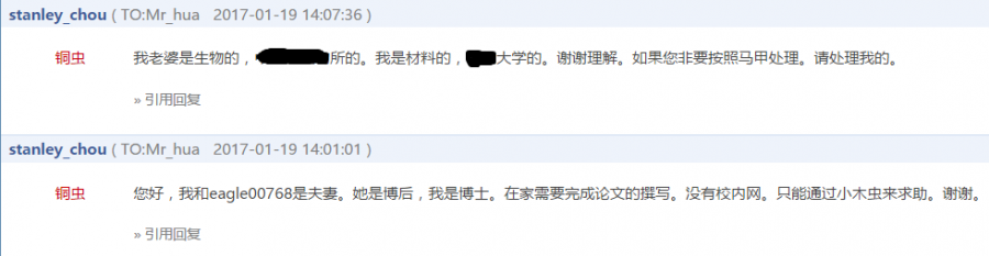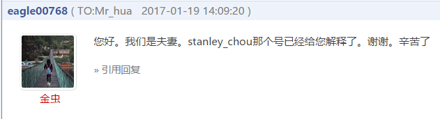 对ID stanley_chou 、eagle00768 马甲求助行为的预处理意见