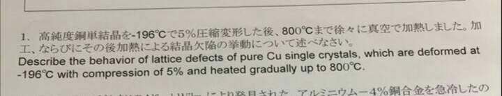 材料大神们,求指点单晶铜热处理的问题,原问题如图片所示。 在-196℃时具有5%的压缩变形,然后缓慢加热至800℃的单晶铜,具有什么样的晶格缺陷?或者有什么样的资料可供解释这个问题,谢谢! IMG_20170122_172555.jpg |